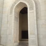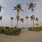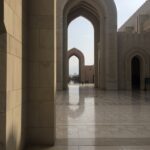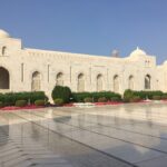 The gardens of the mosque, with reflection The architecture at the Sultan Qaboos grand mosque looks simple but has hidden detail Inscribed arch at Sultan Qaboos mosque Much of Oman’s rocky desert is very moon-like, such as this stretch near Hatta Entrance to Muttrah Souk Muttrah Souk from the outside Palm trees in a clearing at Qurum Beach